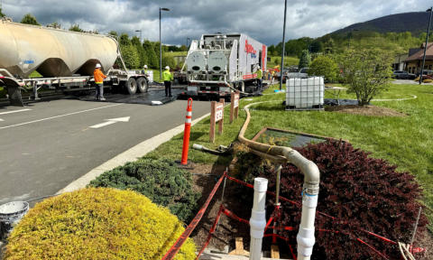 Location: West Jefferson, NC Overview: This project involved the rehabilitation of a deteriorated corrugated metal storm drain following the development of a sinkhole. To restore system integrity and address subsurface instability, a new carrier pipe was installed, and the annular space was stabilized using a Low-Density Cellular Concrete. Challenge: The existing 60-inch corrugated metal pipe had experienced significant deterioration, resulting in a sinkhole and loss of surrounding soil support. The annular space between the new 42-inch carrier pipe and the host pipe required a material capable of flowing long distances, filling irregular voids, and stabilizing the surrounding soils without imposing excessive loads on the compromised infrastructure. Solution: RyanGeo placed 150 cubic yards of 33 pcf Low- Density Cellular Concrete (LDCC) into the annular space along 400 linear feet of stormwater pipe. The high flowability of LDCC allowed it to fully encapsulate the 42-inch carrier pipe, fill voids created by the sinkhole, and stabilize the failing host pipe while minimizing additional structural loading. Results: Total Length Grouted: 400 linear feet Pipe Configuration: 42-inch carrier pipe inside 60-inch CMP Material Placed: 150 cubic yards of 33 pcf LDCC