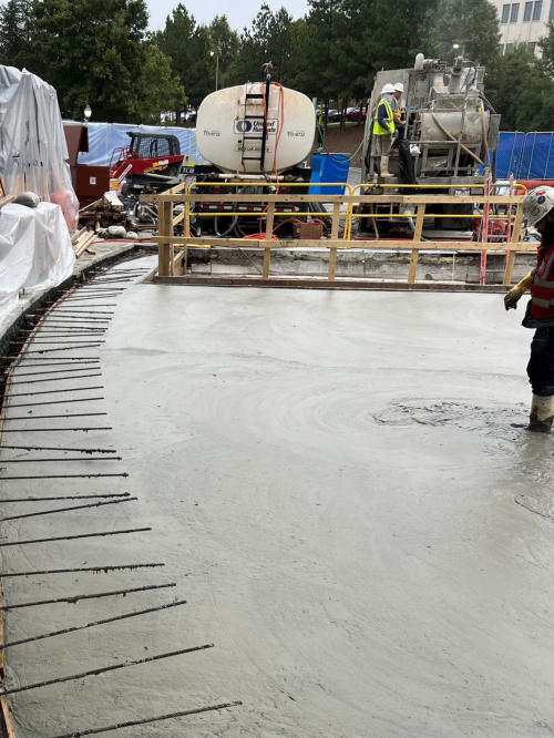 Location: Durham, NC Overview: This project involved the placement of an engineered lightweight fill at Duke Hospital to support an elevated slab over basement-level loading docks. Cellular Concrete was selected to reduce structural loading while providing a durable, high-performance fill solution compatible with the hospital’s structural and architectural requirements. Challenge: The elevated slab design required a fill material that would minimize dead load on the structure without sacrificing bearing capacity. Traditional fill materials posed risks of overloading the elevated slab and required extensive compaction, which was impractical in the confined conditions above the active loading dock area. Solution: Class V Cellular Concrete with a cast density of 45 pcf and a minimum compressive strength of 200 psi was selected as the engineered fill. The material’s high flowability allowed it to be placed efficiently, self-level into position, and eliminate the need for mechanical compaction. Its lightweight nature significantly reduced dead load while still providing the required bearing capacity for the finished slab system. Results: Material: Class V Cellular Concrete Cast Density: 45 pcf Minimum Compressive Strength: 200 psi Application: Lightweight fill over elevated slab above basement loading docks Key Benefit: Reduced structural loading with no compaction required