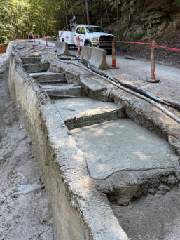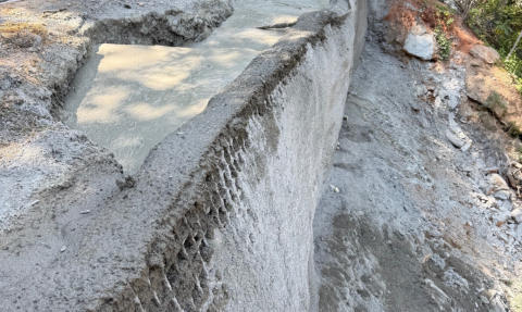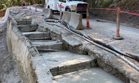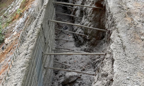 Location: Lake Lure, NC Overview: Following Hurricane Helen, intense rainfall triggered a slope failure beneath Proctor Road, threatening roadway stability and long-term slope performance. The project required a solution that would stabilize the slope while minimizing additional driving forces that could lead to future landslip events. Challenge: The failure occurred below the roadway, where restoring the slope using traditional fill would have increased the driving force of the soil mass and heightened the risk of continued movement. The repair needed to reduce overall slope loading while addressing voids created during excavation and stabilization activities. Solution: Portions of the failed material were excavated, and vertical micropiles and soil nails were installed to stabilize the slope. Shotcrete was then applied to form a durable, reinforced protective wall. Low- Density Cellular Concrete (LDCC) with a cast density of 30 pcf was used to fill the remaining voids between the shotcrete wall and the slope. The lightweight, highly flowable nature of LDCC allowed the voids to be filled efficiently while significantly reducing the driving forces acting on the slope. Results: